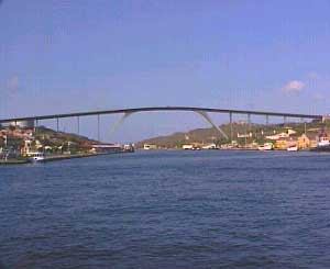 right Otrobanda. There's a big ship going out, what means the Queen Emma Ponton Bridge is