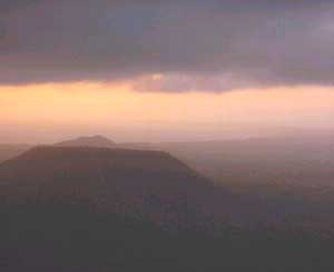 Here you see this flat mountain filmed from the peak of the Christoffel