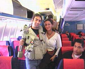 I met them in Amsterdam. The stewardesses took away his heavy box