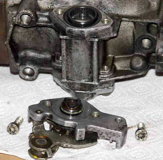 merken, dann passt's vielleicht später wieder leichter zusammen. Der KSB ist mit 2 Torx-30 Schrauben befestigt. Die lassen sich nur wechselseitig rausdrehen, da der Hebel entweder die eine oder die andere Schraube bedeckt bzw. freigibt. |