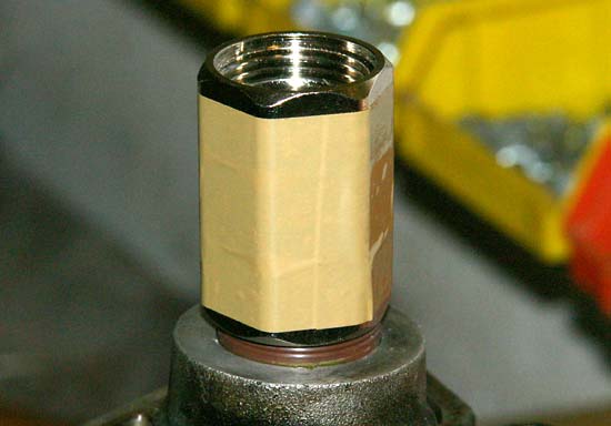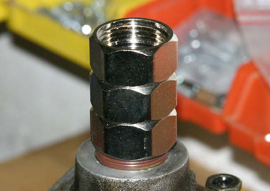 Die 3 Überwurfmuttern zusammenkleben, damit sie nicht