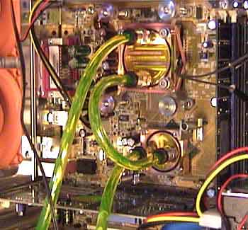Der PC von innen: CPU und Northbridge sind mit Kupferkühlern versehen. Das