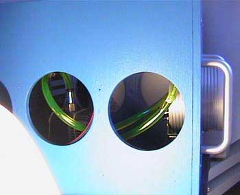 Rechts: Durch die Seitenlöcher strömt die Luft, für den Radiator. Außerdem sieht